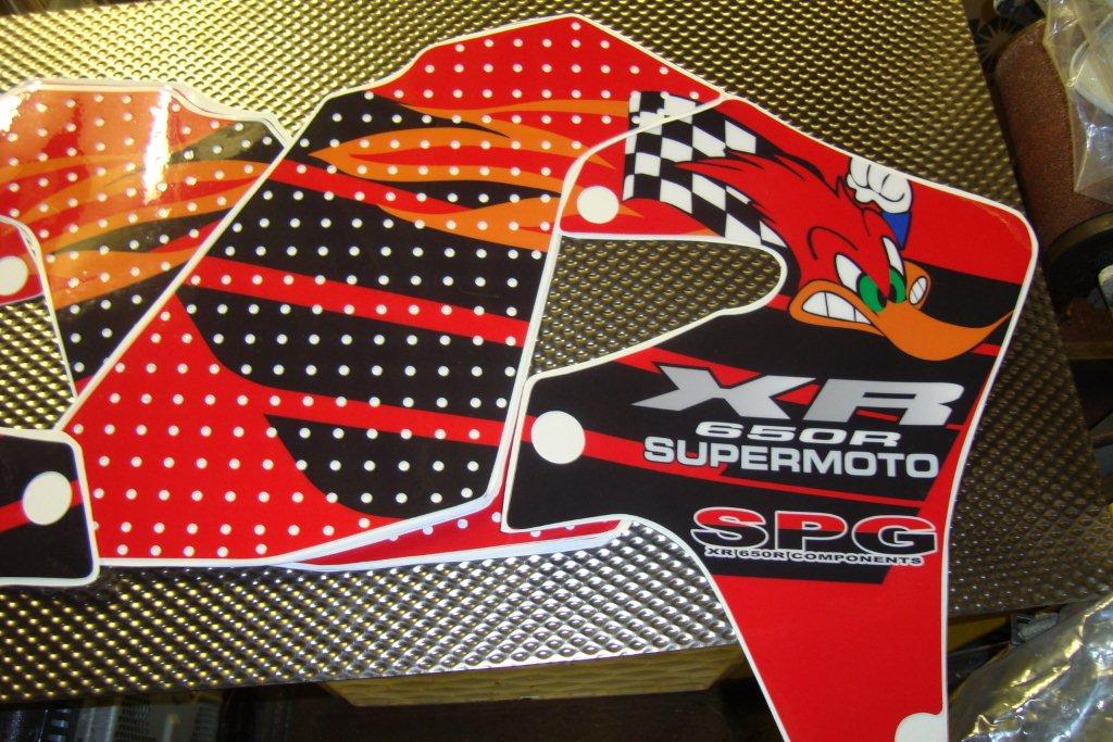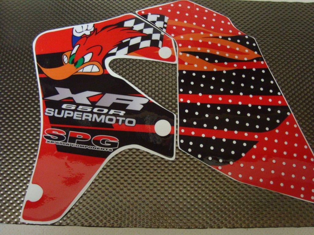 is for the Honda 2007 model, in our opinion the nicest graphics ever fitted to the XR650R. The other set are Woody Woodpecker Ricky