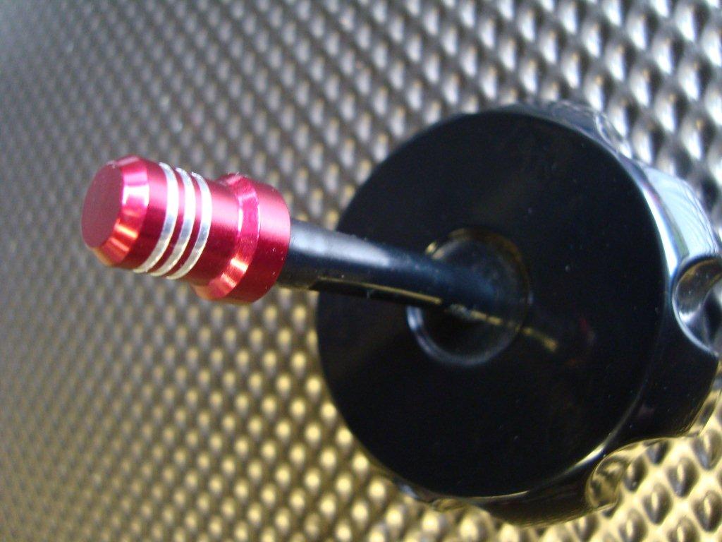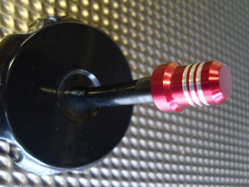 Tank vent / breather; these come in Red, Black, Gold and Silver and are used on all our bikes. Saves messing about with a rubber hose when you are filling up, looks neat and tidy.