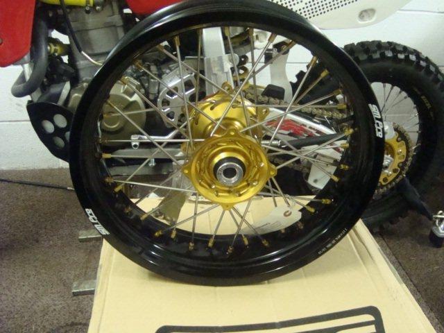 with very heavy gauge spokes, powder coated rims, these are built to Paris Dakar standards.